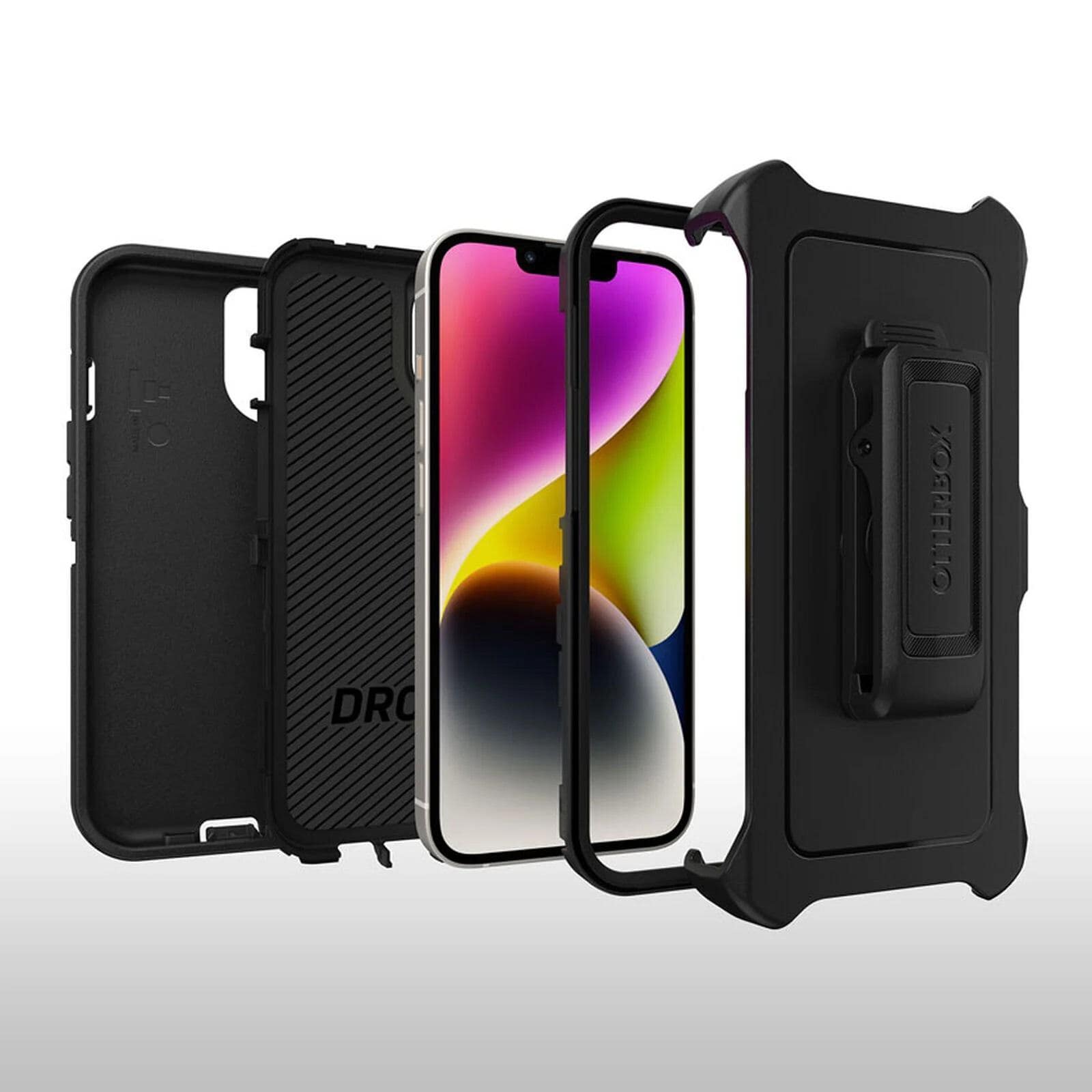 Protect your iPhone 14 with the OtterBox Defender Series in Black – a rugged, scratch-resistant protective back cover featuring multi-layer defense, port covers, and a textured grip. Designed to provide strong protection without bulk, it offers reliable durability and easy access to all buttons and ports.