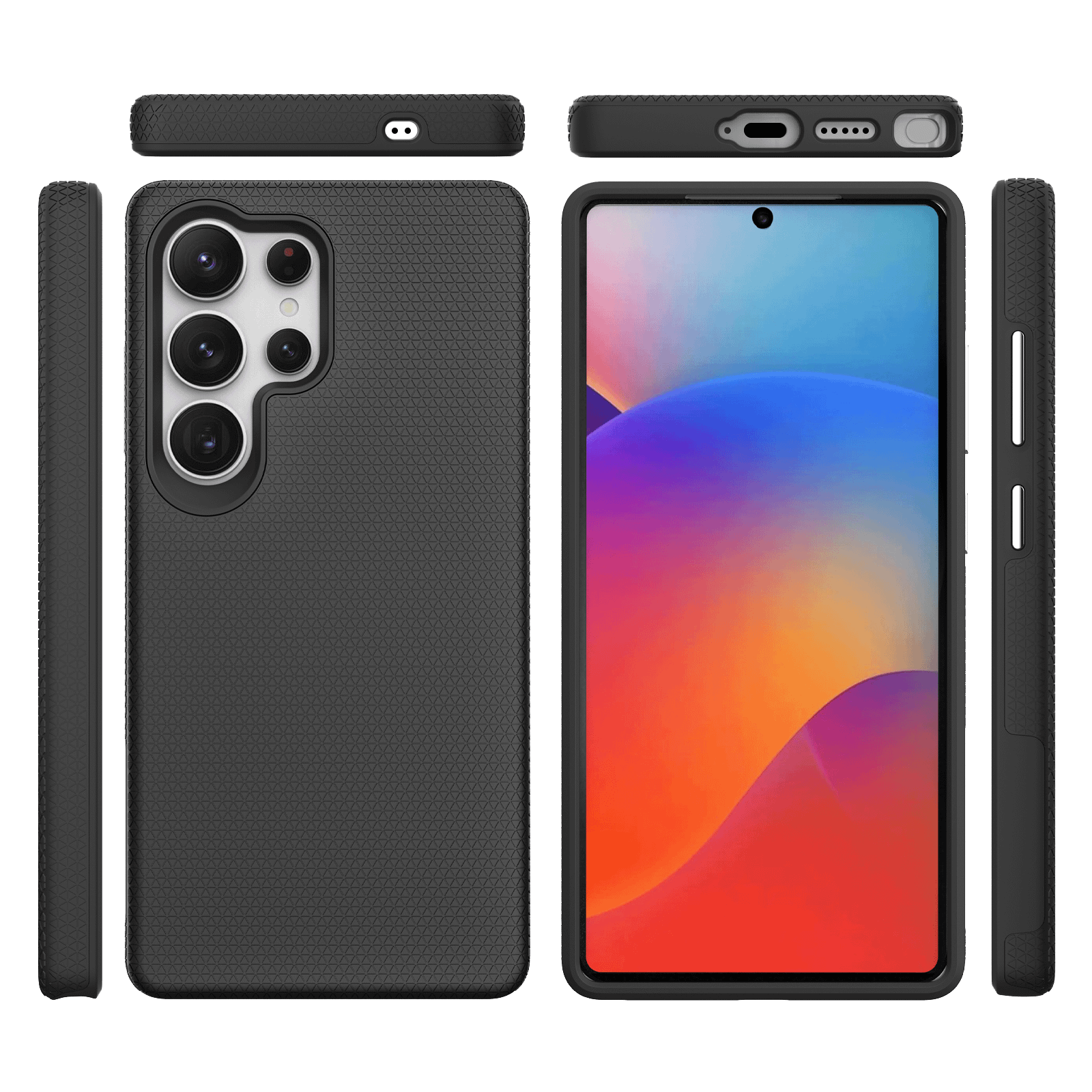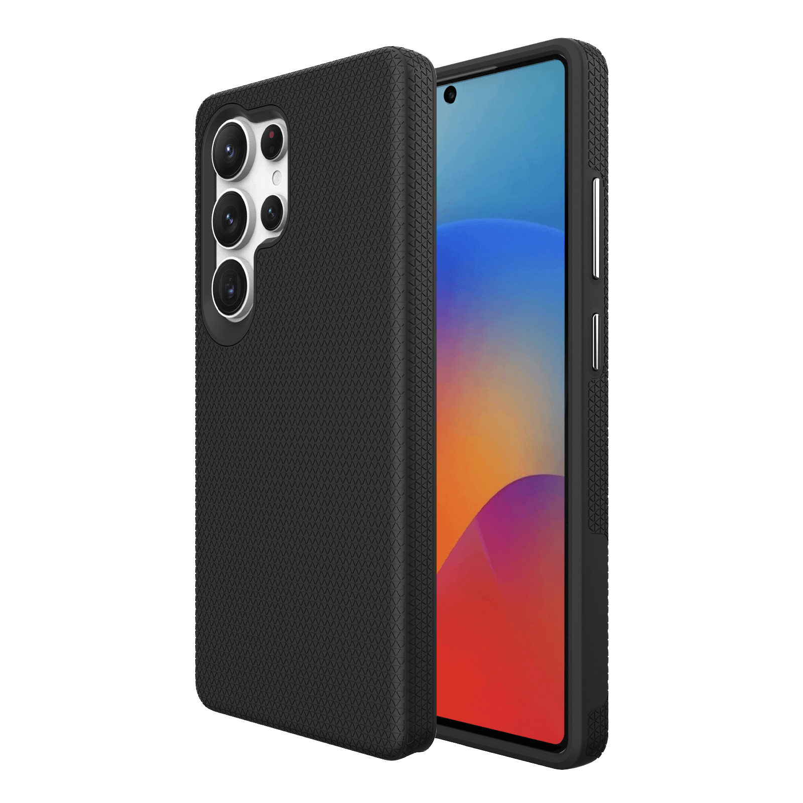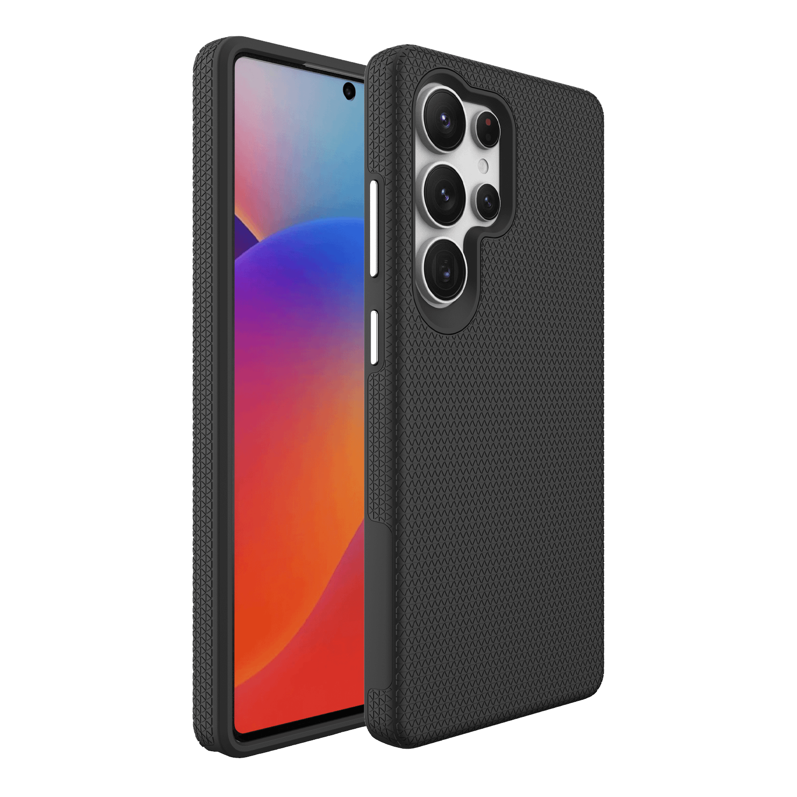 Protect your Samsung Galaxy S25 Ultra with the rugged triangle texture MagSafe case in black – a premium cover featuring shockproof durability, MagSafe compatibility, and a non-slip grip. Designed with style and function in mind, it includes raised edges for screen and camera protection, offering everyday defence and convenience in a bold, modern design.